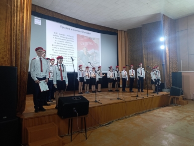 В рамках празднования 80-летия Победы, в День Воинской славы России – День полного освобождения Ленинграда от фашистской блокады, в кинотеатре «Звезда» учащимися 8 «б» (кл. руководитель Серегина В. А.) МОУ «Лицей» была подготовлена литературно - музыкальная композиция.
