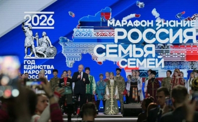 5 февраля в Национальном центре «Россия» состоялся федеральный просветительский марафон «Россия - семья семей» Общества «Знание». Масштабное событие проходило в Национальном центре «Россия» и объединило свыше пяти тысяч молодых людей - представителей 194 народов РФ, а также гостей из ближнего зарубежья. На марафоне Президент РФ Владимир Путин в торжественной обстановке при участии всех 89 регионов нашей страны дал старт Году единства народов России.