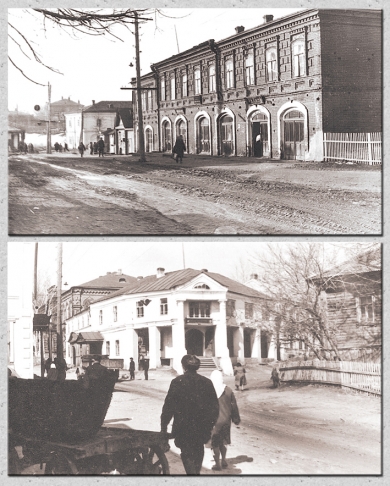 «ТИ» продолжают экскурс в прошлое по центру города - улице Коммунистическая. Первое фото сделано в апреле 1967 года. Двухэтажное здание из красного кирпича принадлежало купцам Скоробогатовым. С начала 20-х годов прошлого века и до 1956 года на втором этаже здания располагался краеведческий музей.
