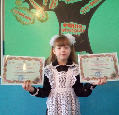 Ученица 2 класса Селищинской основной школы Татьяна Ашаева приняла участие во Всероссийском литературном конкурсе «Герои Великой Победы 2017» и дошла до полуфинала. В январе юной поэтессе были вручены сертификаты.