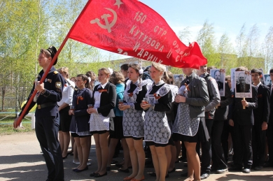 В п.Кадошкино "Бессмертный полк" насчитывал более 80 портретов участников Великой Отечественной войны, пропавших без вести, погибших, умерших в мирное время. Высоко над головой несли портреты внуки и правнуки.