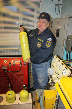 В газодымозащитную службу, которую возглавляет мастер ГАЗС Ю.А. Башаев (на снимке), в прошлом году на вооружение поступил австрийский компрессор, который позволяет за несколько минут заправить воздухом четыре баллона до расчетного давления 300 атмосфер. Заправка баллонов производится не только для Торбеевского подразделения, но и четырех, прилежащих к нам районов.