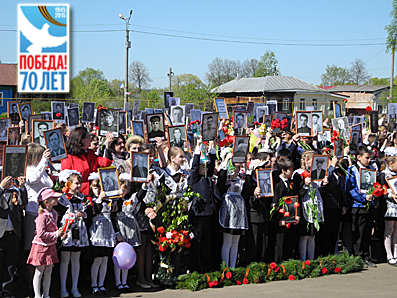 На следующий день, 9 мая, к обелиску погибшим воинам шли участники марша «Бессмертный полк». Более 80 портретов героев Великой Отечественной несли в руках их внуки и правнуки.
