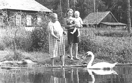 На снимке: на зов кормилицы. В. И. Ханзярова с дочерью Наташей и матерью. 1972 г.