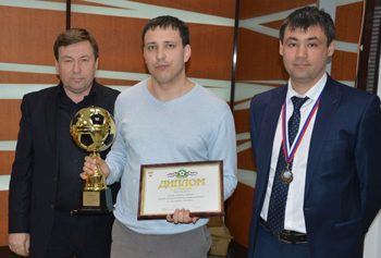 9 апреля в Саранске, в Пресс-центре Дворца водных видов спорта прошло награждение призеров Чемпионата Мордовии по мини-футболу сезона 2015-2016 г.г. Отличившихся награждали Президент Федерации футбола РМ А. Яшков и член Совета Федерации футбола республики Мордовия Ю. Шохин.В своем выступлении А. Яшков подвел итоги прошедшего сезона, выразил благодарность главе администрации Торбеевского района И. Шумкину, который многое делает для пропаганды этого вида спорта. Шесть лет подряд торбеевские футболисты становятся чемпионами по мини-футболу. В этом большая заслуга и тренерского состава во главе с А. Бобриком. На торжественной церемонии награждения А. Яшков вручил капитану команды «Торбеево» Д. Цыпцыну Кубок и Диплом за первое место (на снимке), золотые медали получили все игроки нашей сборной. Лучшим бомбардиром Чемпионата 2015-16 г.г. по мини-футболу признан нападающий «Торбеева» Василий Федосейкин.