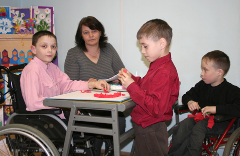 С 7 утра до 10 вечера она находится со своими воспитанниками младшей группы, среди которых большинство не могут самостоятельно передвигаться. А рядом с воспитателем дети в инвалидных колясках и на костылях чувствуют себя полноценными, мечтают и постигают нелегкую науку знаний.