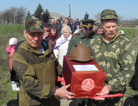 «Бой под Речицей был страшным, - обращаясь к родственникам погибшего, восстановил события того дня командир поискового отряда Марат Тешабаевич Санаев, который вместе с единомышленником полковником в отставке Александром Михайловичем Ростовым доставил в Аксел капсулу с останками погибшего воина. - Местные старожилы вспоминают, как все поле было усеяно лошадьми и людскими телами, будто немцы утюжили высоту. В тот день 1-й кавалерийский полк принял удар на себя, но под натиском 150 фашистских танков не устоял. Потери были огромные - погибло более 600 бойцов. Местность трудная: кругом овраги, болота, глинистая почва. Вокруг сосны, которые видели войну. За 2 года поиска удалось поднять лишь 29 останков, именных среди них только двое, в том числе Баринов Н. К. Остальные захоронены с почестями в братской могиле».