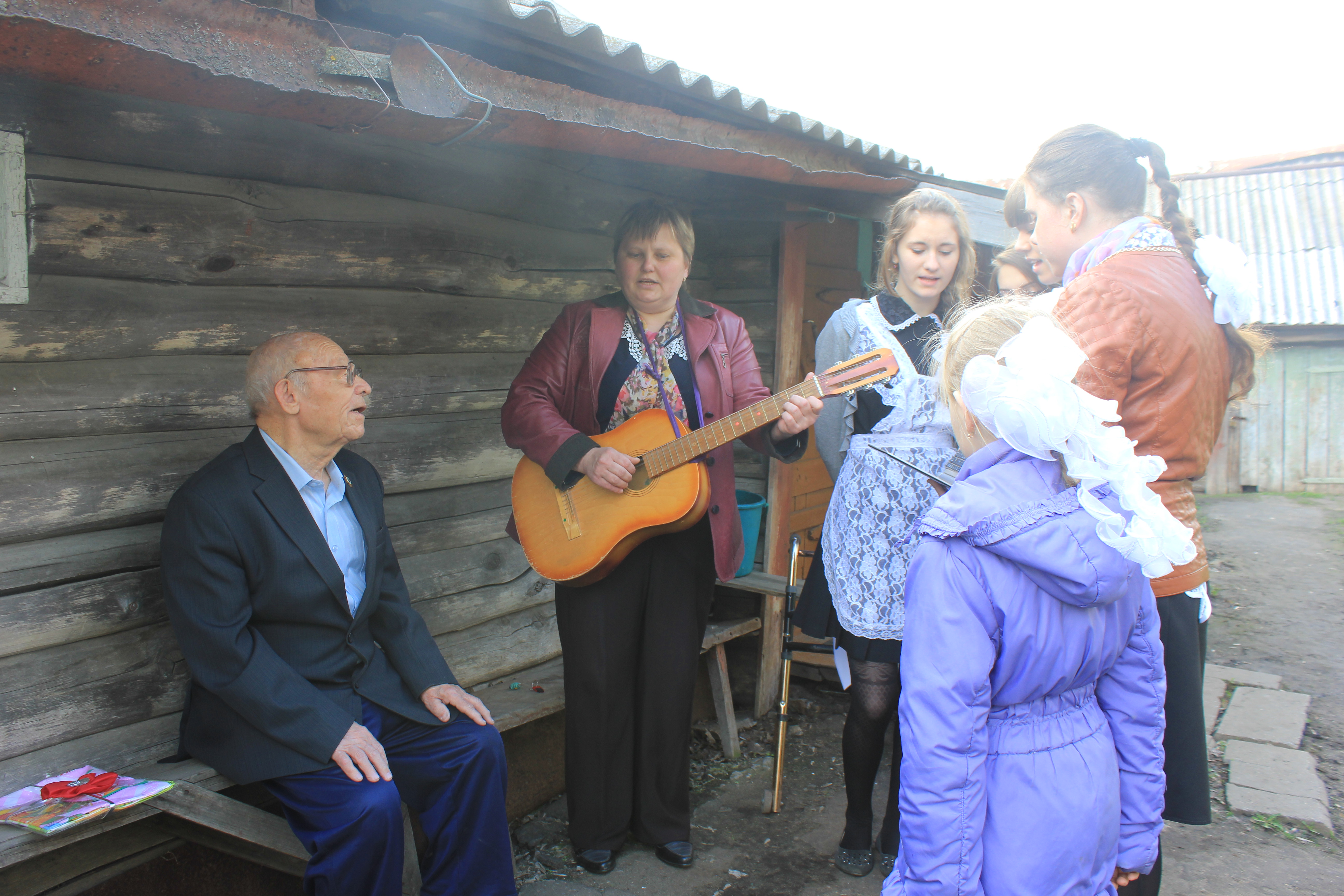 "И поёт мне в землянке гармонь...". Это слова любимой песни ветерана войны Николая Ивановича Сыгонина, которую он спел вместе с волонтёрами. Только не под гармонь, а под гитару. Николай Иванович - знаток истории посёлка Кадошкино и всего района. Ребята пожелали ветерану здоровья, благополучия, бодрости духа и неиссякаемой энергии.