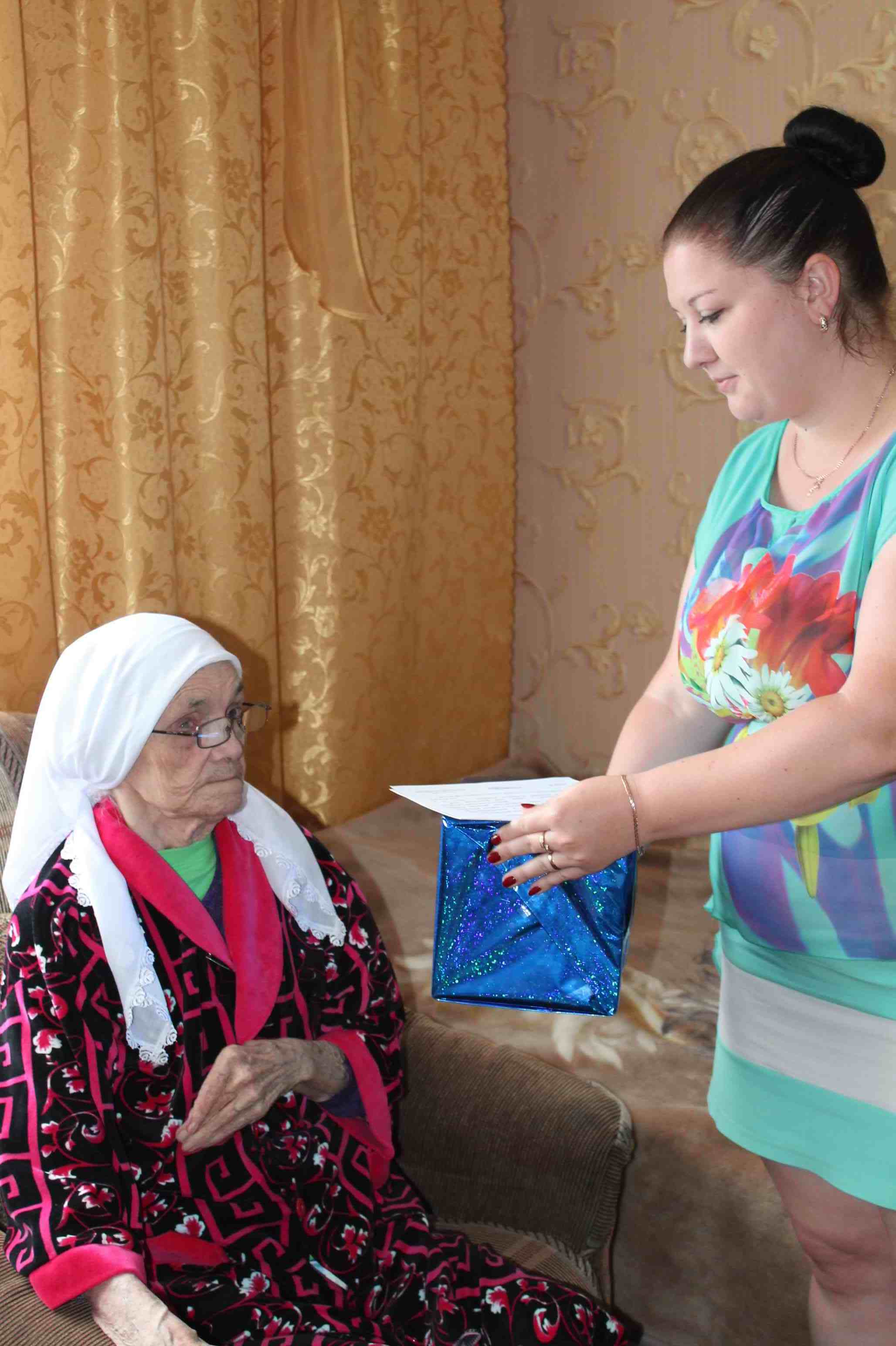 Поздравить юбиляршу и вручить подарки пришли представители районной администрации, городского поселения, соцзащиты населения и ветеранской организации.