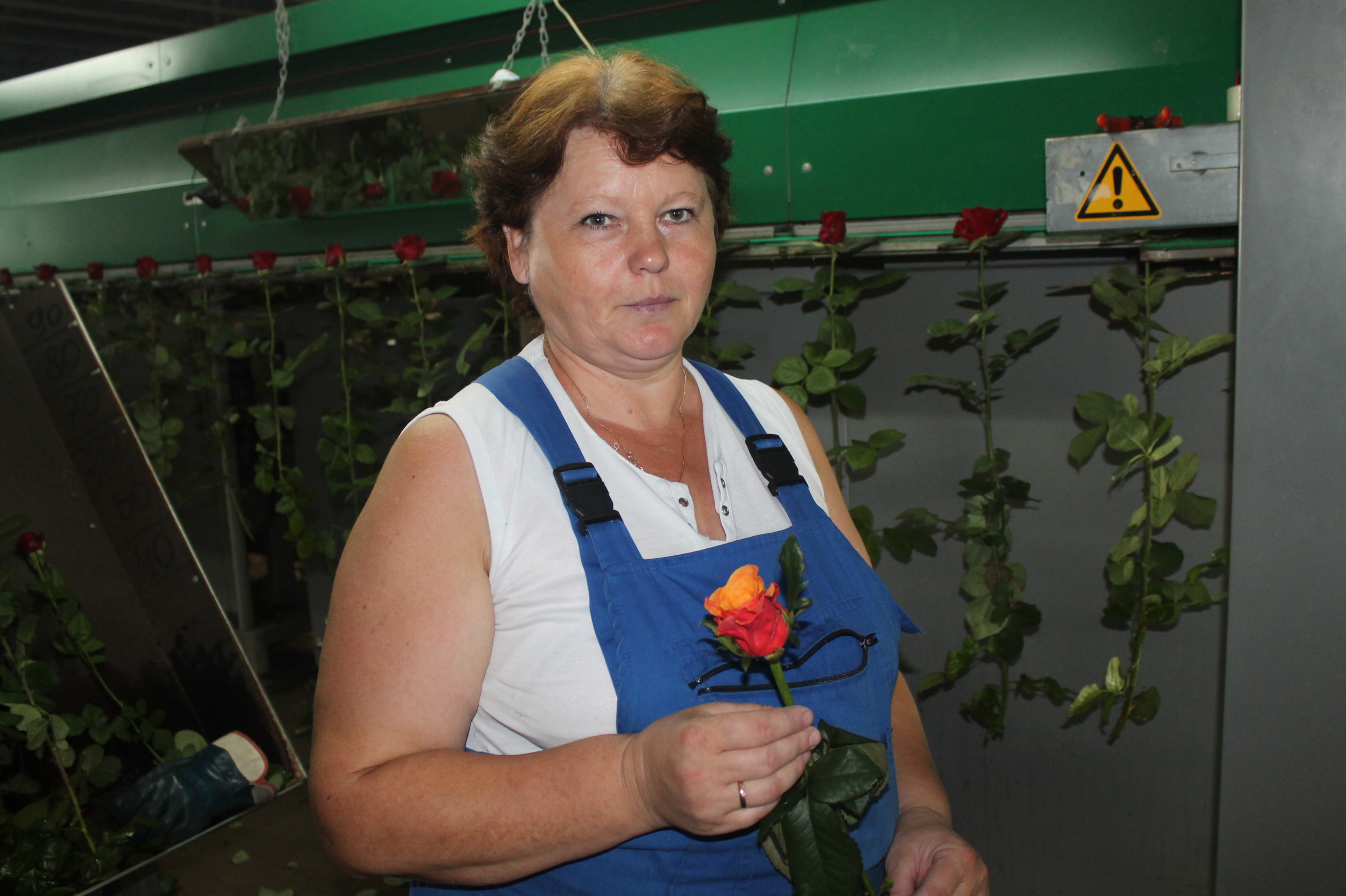 В.И. Мишанина – цветовод первой теплицы АО "Мир цветов". Она по праву относит себя к первому потоку рабочих. Пришла сюда устраиваться, когда предприятие только становилось, как говорят, на ноги. Все трудности роста пришлось "примерять на себе" тому коллективу "первопроходцев". Вот уже 10 лет их стараниями живет и развивается сельскохозяйственное предприятие в нашем районе. - До того времени только лишь представляла какая работа в теплице, и то отдаленно, по рассказам тех, кто уже до меня сюда пришли. Раздумывала: понравится или не понравится. Больше волновалась, что вдруг не пойму как здесь поставлена работа, никогда не работала в тепличном производстве, и не справлюсь, - делится собеседница. – Но когда сама зашла впервые в теплицу, поняла, что все мои сомнения напрасны. Чего не умею и не знаю, тому научусь! Коллектив-то только набирается, все цветоводы так же, как и я, обучаются, практикуют. А навык придет. Честно признаться, цветами никогда и не занималась, даже дома. Есть кое-какие, да и ладно. А пришла сюда работать, поняла "в какой красоте работаю". И на цветы, в частности, стала смотреть другими глазами. Ни за что не поменяю место работы. И оказалось, что люблю цветы! Особо вспоминаются те моменты, когда дарят их коллеги, например, на день рождения. Хотя у нас так принято, но "свой букет", все равно кажется особенным. Вспоминаю, какую охапку роз коллеги мне прислали в больницу, когда выписывались с малышом. Было очень приятно такое "красивое внимание". И не надоедает такая красота, привыкнуть невозможно, хотя, кажется, что изо дня в день занимаешься однотипной работой. Вера Ивановна действительно освоила профессию цветовода в короткий срок, теперь она считается одним из лучших цветоводов тепличного хозяйства. И может работать на любой из операций - хоть в теплице, хоть на конвейере. Вера Ивановна разбирается во всех сортах выращиваемых роз. В связи с реорганизацией теплицы первой очереди выращивается уже девять сортов. Шесть из них – новые сорта. Все цветы и цвета яркие, нравятся, но особенно из новых сортов "Испания" пришелся по душе более остальных. А, вообще, по мнению цветовода со стажем, с ней в этом вопросе не поспоришь, нет некрасивых цветов. Все цветы красивы. Как и сами работницы, руками которых они взращиваются.