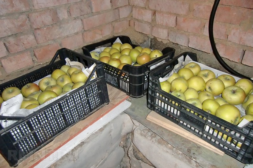 Для длительного хранения плоды снимают с веточек осторожно, без травмирования мякоти и кожицы плодов, стараясь не повредить тонкий поверхностный слой их воскового налета, что способствует потенциальной лежкости. Собранный урожай ни в коем случае не оставляют в жилой комнате, поскольку установлено: каждый час хранения при домашней температуре с пониженной влажностью сокращает продолжительность их "жизни" на целые сутки. Напротив, охлаждение в холодильнике, подвале, да и хотя бы просто при ночной прохладе сразу же после съема - заметно продлевает. Понятно, что успех и длительность хранения зависят от целого ряда факторов. Например, от правильно выбранного сорта для этой цели, своевременного сбора и послеуборочной подготовки плодов, технологии хранения, санитарной чистоты подвала. Остановлюсь на нескольких важных моментах. Многие садоводы из собственной практики знают: дольше других хранятся предварительно промытые, чистые яблоки. А еще лучше те, что прогреты в горячей, 55-градусной воде, как это выяснили сотрудники ВНИИ садоводства. Лишь после этого их охлаждают и укладывают в ящики, переслаивая мягкой стружкой, листьями рябины или обернув бумагой. В свою очередь заполненную плодами тару размещают на полках заранее подготовленного подвала, где температура не поднимается выше +5-6°С и не опускается ниже -1°С. Такую температуру, замечу, обычно более-менее выдерживают. Реже регулируют другое необходимое условие - влажность воздуха. Она обязательно должна быть высокой - 85-95%, для чего достаточно регулярно поливать пол водой, установить широкие сосуды с водой, да и почаще проветривать помещение. Лишний раз напомню и о важности санитарной чистоты хранилища. Еще до загрузки его стены, потолок, пол и деревянные полки помещения должны быть очищены даже от мельчайших остатков прошлого урожая, промыты, просушены и продезинфицированы. Иначе здесь в считанные дни начнутся гнилостные процессы, активируется грибок. Раньше для этой цели использовали зловонные формалины, хлорную известь и каустическую соду. Теперь - современные средства, такие, как "ФИАМ-супер" - удобно, безопасно и эффективно, так и серная шашка "ФАС". Ее очистительный дым уничтожает источники любой заразы, а также изгоняет насекомых и мелких грызунов из труднодоступных уголков подвала.
