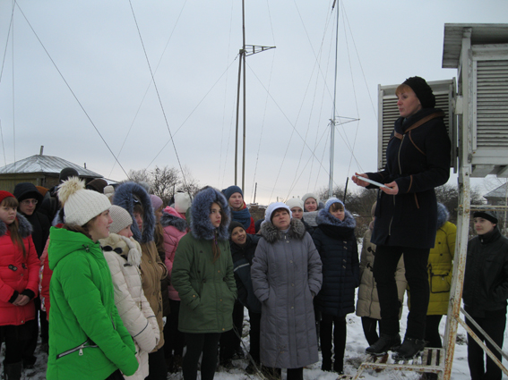 Школьники в этот день участвовали не только в снятии показаний приборов, но и в составлении телеграммы для отправки в метеослужбу Саранска: «В Темникове температура воздуха минус 4,2 градуса С, давление - 759 мм. рт. ст., температура почвы - минус 3 градуса С, переменная облачность, ветер юго-восточный 3 м/сек». В конце экскурсии И. В. Труняшина сообщила, что метеостанция работает по всемирному времени, которое опережает наше на 3 часа.