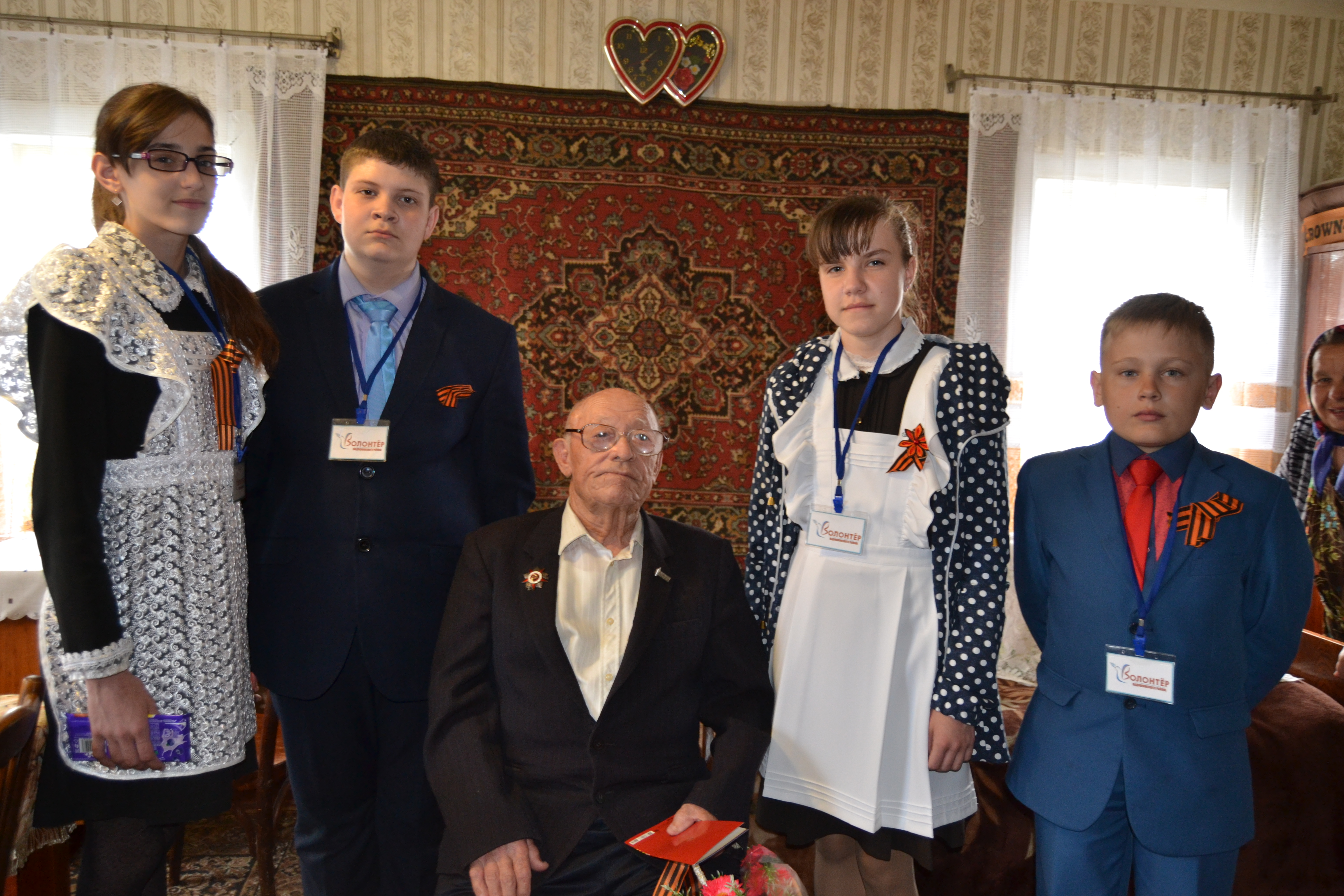 В предпраздничные дни школьники-волонтеры под руководством наставников В.В. Базаевой и Н.С. Тамбовцевой посещают на дому участников Великой Отечественной войны. Они не только поздравляют ветеранов с наступающим Днем Великой Победы, но и вручают подарки, которые сделали своими руками ребята, посещающие кружки декоративно-прикладного творчества ДДТ. На снимке: волонтеры с участником Великой Отечественной войны из поселка Кадошкино Николаем Ивановичем Сыгониным.
