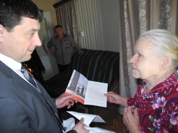На снимке: 92-летняя вдова участника ВОВ Нина Федоровна Симайкина всю жизнь стояла на страже здравоохранения населения Старогородского ФАПа. Ее трудовой стаж - более 60-ти лет. С. Н. Кизим, вручая поздравление от Главы РМ В. Д. Волкова, пожелал ей здоровья и долгих лет жизни.