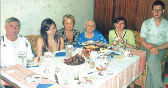 На снимке: Н. Ф. Маркеева (в центре) в кругу семьи и учеников