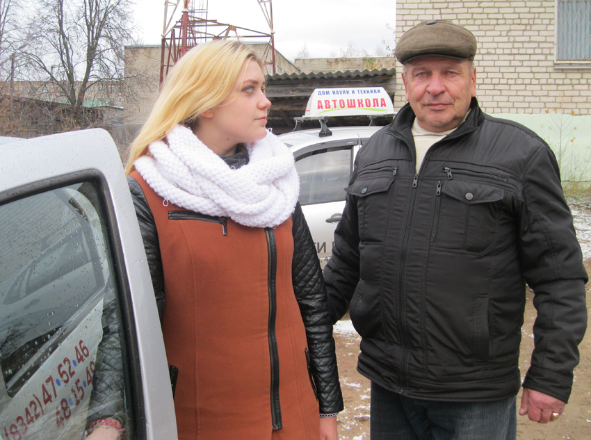 На снимке: сегодняшняя ученица В. П. Пихтелькова, 11-классница Аня Меркулова, как и ее инструктор, считает, что умение управлять автомобилем сейчас необходимо