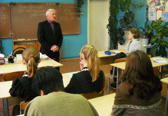 На открытом классном часе в 5-8 классах ребята узнали, что революция произошла в отсталой аграрной стране, в которой люди только-только в феврале 1917 года избавились от царизма, в то время, как в западных странах буржуазные революции произошли гораздо раньше. С 1914 года Россия участвовала в Первой мировой войне, что, естественно, сказалось на крестьянских хозяйствах, так как многих мужчин забрали в армию. Да и в городах на заводах и фабриках ситуация была не лучшей.