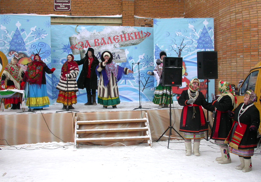 Люди разных возрастов с удовольствием участвовали в конкурсах и играх на тему валенок, слушали талантливых самодеятельных артистов. На заснеженную сцену, сменяя друг друга, выходили вокальные ансамбли «Лаймоня», «Веселушки», «Родники», «Ивушки», «Конак», «Русская частушка», «Сандугачлар», «Сударушка».