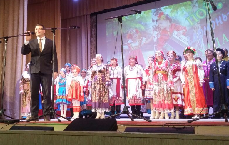 Открыла праздник выставка-ярмарка национальных блюд, напитков и сувенирной продукции. Как и принято на ярмарке, художественные коллективы устроили народный перепляс, зазывая зрителей. А съехались они из всех сел и деревень нашего района. Среди них больше людей старшего и среднего поколения. Первые - сами когда-то пели частушки и страдания на завалинках, с гармошкой шли свататься, а вторые учились у них этому самобытному искусству, передавая его сейчас своим детям и внукам.