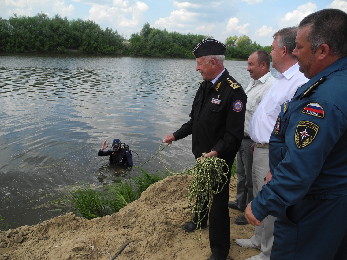 Валерий Павлович, стоя на берегу, в руках держал специальное приспособление для фиксирования на глубине водолаза. И вот водолаз вынырнул, крикнув, что на обследуемом участке глубина около 2,5 метра и сильное течение.