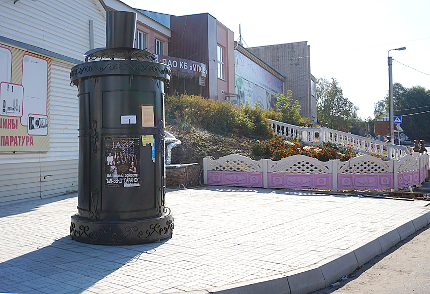Новую ретро-тумбу для объявлений в центре исторической части города горожане прозвали «шляпой» по оригинальному металлическому аксессуару сверху. Появилась она весной. И все поняли, как не хватало этого нужного предмета в виде малой архитектурной формы. Теперь яркие афиши о проведении праздников или спортивных соревнований издалека зазывают темниковцев не пропустить важные события.
