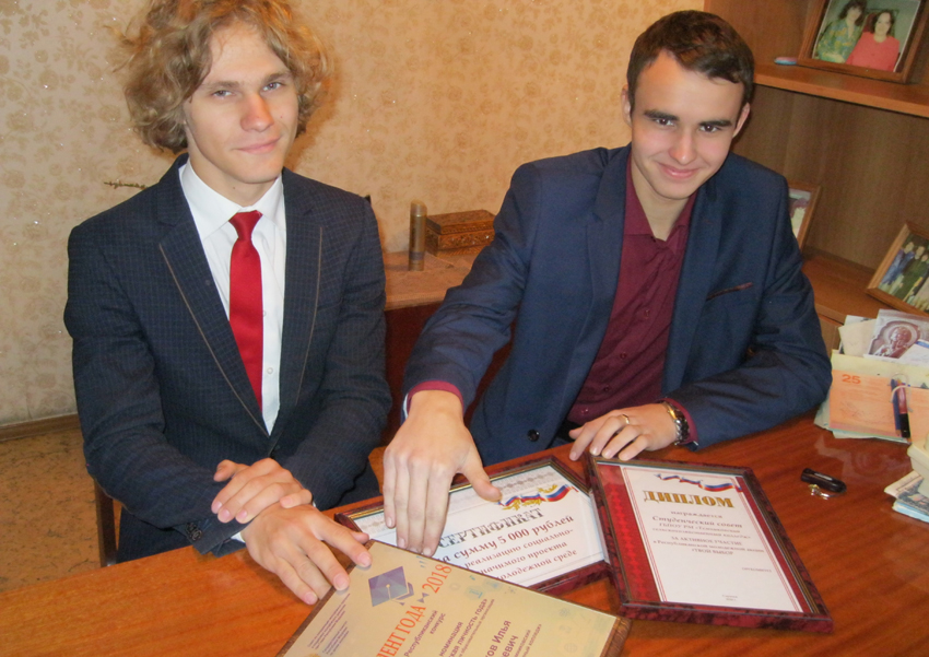 Дипломом «За активное участие в республиканской молодежной акции «Твой выбор» отмечен и студенческий совет колледжа, который возглавляет Игорь Коршунов. Эту высокую награду и сертификат на 5000 рублей председателю студсовета колледжа вручил ректор Мордовского госуниверситета им. Н. П. Огарева С. М. Вдовин.