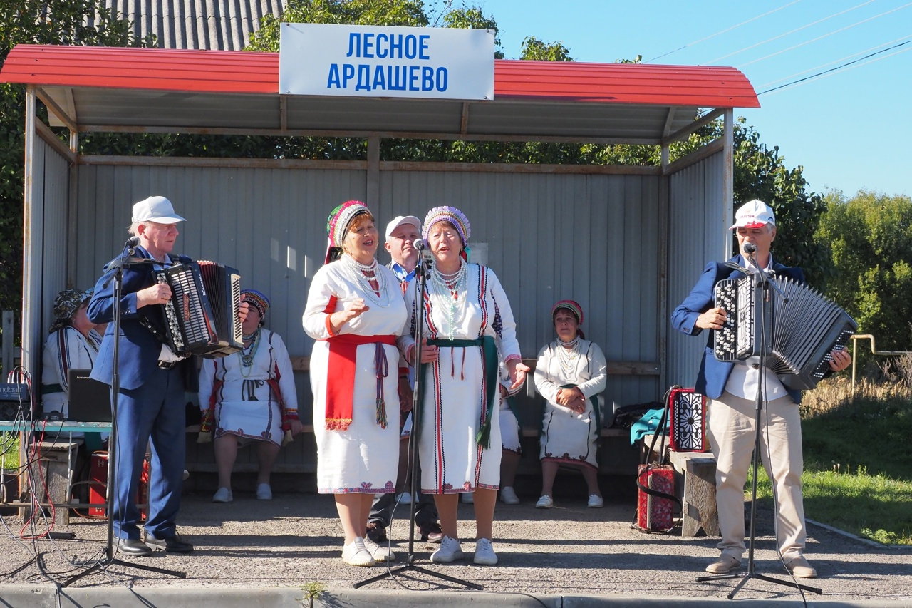 И на этот раз в солнечный сентябрьский день в Лесном Ардашеве состоялся душевный праздник. Импровизированной сценой выступила автобусная остановка в центре села неподалеку от храма. Почётными гостями стали глава Темниковского района Олег Родайкин, родители участников СВО.