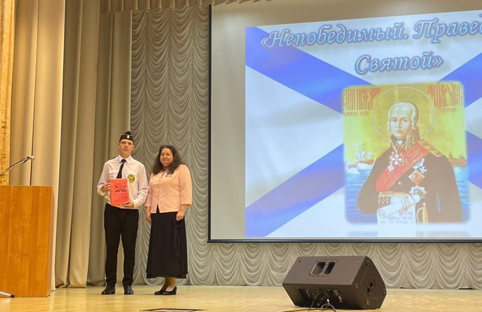 Ребята посмотрели фильм о победе русской эскадры под командованием контр-адмирала Федора Федоровича Ушакова над османским флотом у мыса Тендра. Ольга Змерзлая рассказала участникам мероприятия об адмирале как о ярком образце праведности, беззаветного служения Родине и своему народу.