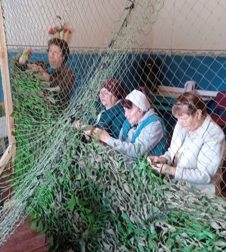 Организованы пункы по плетению маскировочных сетей. К плетению сетей подключились и образовательные организации района, учреждения культуры. Сейчас почти в каждой школе, в детском садике «Солнышко» райцентра стоят рамки для плетения сетей. Некоторые неравнодушные люди плетут сети и у себя дома. Как, например, Г. А. Махрова и Т. В. Проставилина с дочкой Машей. Надеемся, что маскировка, изготовленная с душой и любовью спасёт не одну жизнь бойцов, стоящих на защите интересов нашей страны.