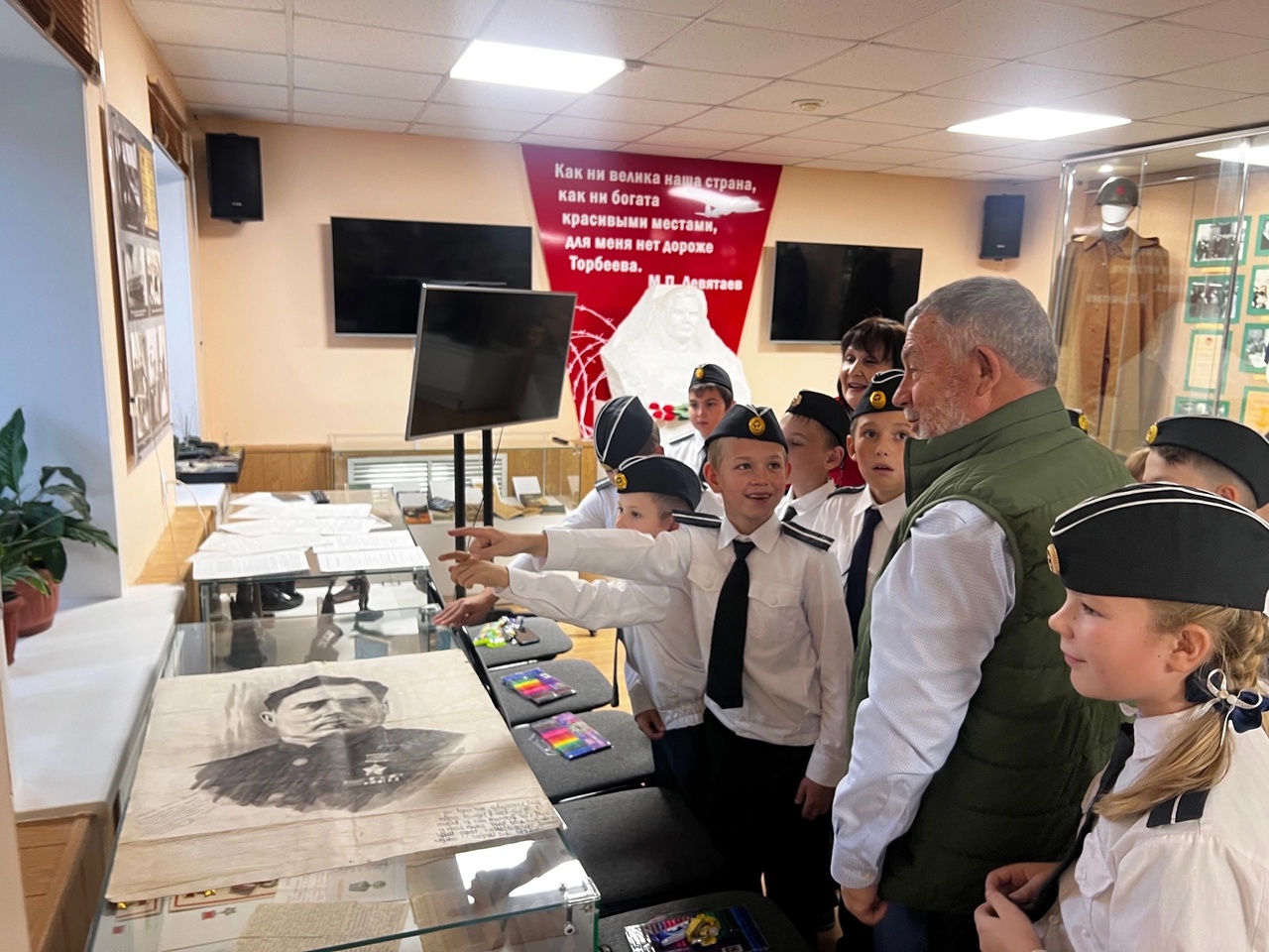 В минувшую пятницу мемориальный Дом–музей Героя Советского Союза М. П. Девятаева присоединился к ежегодному всероссийскому проекту «День в музее для российских кадетов». Эта акция призвана способствовать продолжению традиций русского офицерства, которое всегда служило примером благородства, патриотизма, высокой образованности, интеллигентности, нравственности, отваги и доблести. Стойкость офицеров, героизм, беспримерное мужество, честь и беззаветная любовь к Родине стали святыми основополагающими заповедями для детей, воспитанников кадетского класса из Дракинской средней общеобразовательной школы. Они обучаются под руководством опытных наставников – учителя начальных классов Нины Зюзиной и советника директора школы по воспитанию и взаимодействию с общественными объединениями Ксении Корнеевой. Гостей тепло поприветствовала и открыла праздничный вечер заведующая музеем Наталия Бегаева. Затем кадетские пары элегантно и трогательно закружились в вальсе. В этот день они пообщались с Александром Михайловичем Девятаевым – профессором, доктором медицинских наук, сыном легендарного летчика - истребителя. Александр Михайлович ответил участникам мероприятия на интересующие их вопросы: каким был путь признания подвига, была ли встреча Михаила Девятаева с Сергеем Королевым, как журналист Ян Винецкий «открыл» историю Девятаева широкой общественности, почему был угнан именно тяжелый бомбардировщик Heinkel HE 111, а не истребитель? Праздничное действо было наполнено патриотическим смыслом. На объявленной интеллектуальной исторической викторине “Доблесть русского солдата” абсолютное большинство детей блеснули эрудицией, смекалкой и глубокими познаниями в области военной подготовки, гуманитарных наук, церемониальной культуры. Изюминкой мероприятия стал конкурс капитанов команд, где юноши в парадной форме при аксельбантах мастерски соревновались в силе, артистизме, смекалке, ловкости. Они легко ориентировались в дипломатии, изобразительном искусстве. Приятно было видеть образованную, активную и искренне преданную Родине современную молодежь. Оценивало мышление, креативность, интуицию, логику, знания, творческие способности и ловкость кадетов – «ушаковцев» компетентное жюри. За старание, целеустремлённость мальчики и девочки были вознаграждены памятными подарками и сладкими призами. Кульминацией стала церемония возложения цветов к бюсту Михаила Петровича Девятаева. Это почетное право было предоставлено ученику четвертого класса Матвею Лукьянову.