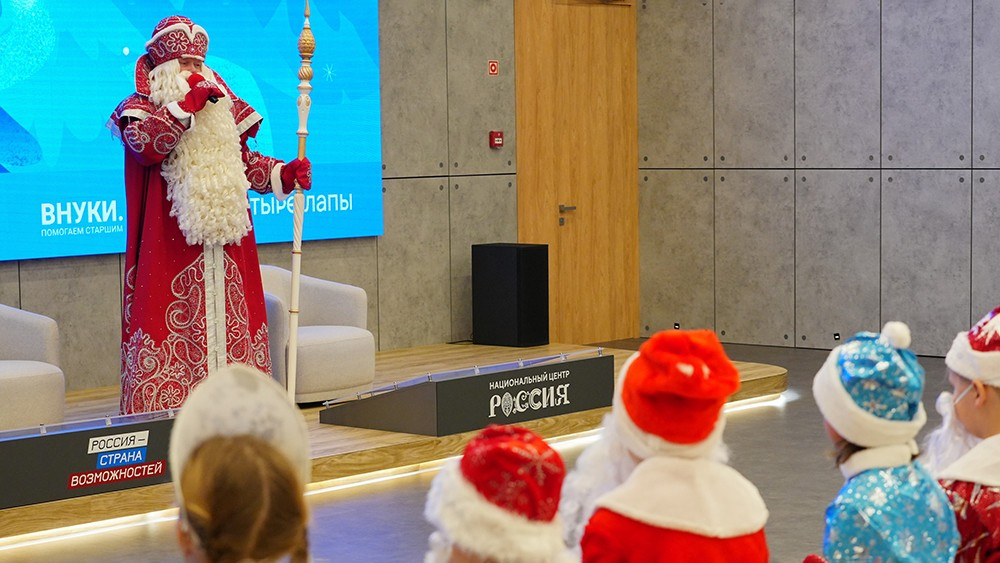 Ранее прошла теплая предпраздничная встреча детей с Дедом Морозом из Великого Устюга. Главный зимний волшебник страны прибыл в Национальный центр «Россия» прямо из своей резиденции, чтобы пообщаться с ребятами, ответить на их вопросы и вручить первые подарки. Дети расспрашивали его о жизни в Великом Устюге, о сказочных превращениях, личных предпочтениях и о подготовке к предстоящему празднику. Дед Мороз заметил, что в людях все еще жива вера в волшебство.