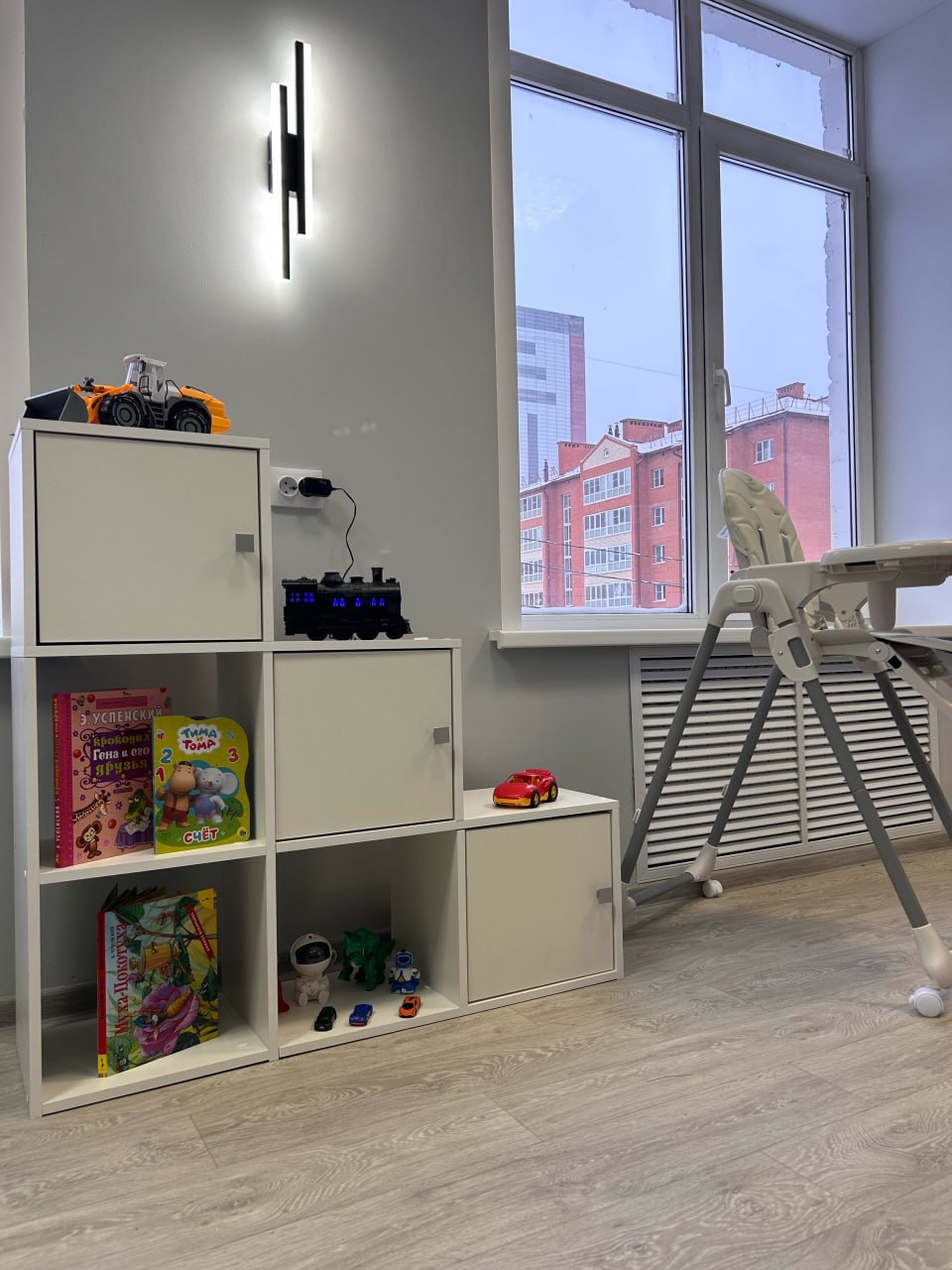 Комнату разместили на втором этаже. Пространство получилось уютным, помещение оборудовано всем необходимым для мам и малышей. Созданы условия для того, чтобы учебные будни студентов-родителей стали комфортнее. В комнате можно будет покормить ребенка в удобном кресле, переодеть его на специальном столике, провести гигиенические процедуры или просто отдохнуть в спокойной обстановке.