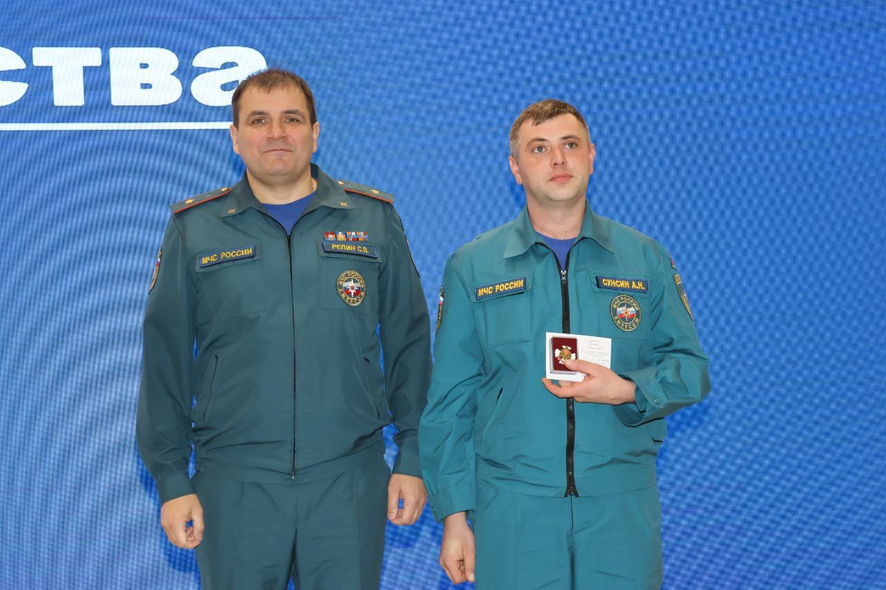 Фото: в честь профессионального праздника Алексею Сунсину вручен нагрудный знак МЧС России «За заслуги»