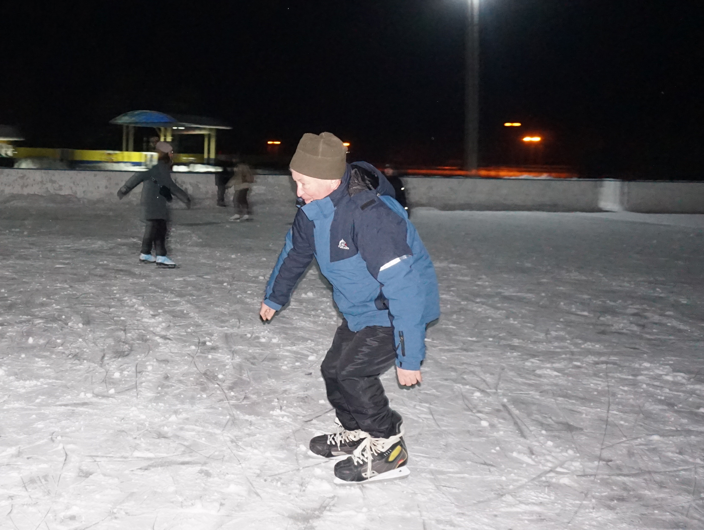 Фото: пример владения коньками в день открытия катка показал директор ДЮСШ Александр Крючков