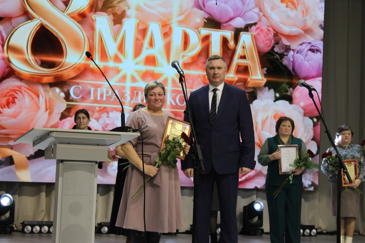 В преддверии 8 Марта в районном Доме культуры прошло торжественное мероприятие. Со словами приветствия и благодарности к прекрасной половине человечества обратился глава Торбеевского муниципального района Сергей Шичкин. Он адресовал милым дамам самые искренние пожелания отличного здоровья, безграничного счастья, благополучия, исполнения всех желаний, заботы родных и дорогих сердцу людей. По сложившейся традиции каждая женщина, присутствующая в зале, получила от главы района великолепные алые розы. К жительницам района со сцены с теплыми словами поздравлений и благодарности обратился депутат Государственного Собрания РМ, начальник Торбеевского ЛПУМГ филиала ООО «Газпром трансгаз Нижний Новгород» Михаил Гречишников.