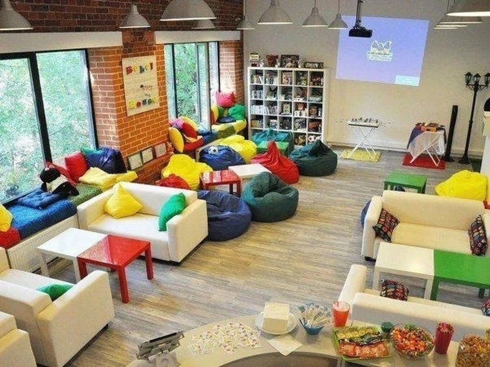 Это уникальное пространство, где молодежь сможет собираться для обмена мнениями и идеями, обсуждения книг и творчества. Основная цель анти-кафе — создание комфортной обстановки для отдыха, общения и совместного творчества. Пространство организовано так, чтобы стимулировать взаимодействие между людьми. Внутри планируется оборудовать зал с удобной мебелью, мягкой подсветкой и минимальным количеством перегородок. Здесь появятся зона для тихих бесед и площадка для группового обсуждения прочитанных произведений. Для удобства посетителей предусмотрены пуфы, мягкие стулья и диванчики. Также в анти-кафе разместятся игровая зона с настольными играми, творческая студия, библиотека с функцией «книжного обмена» и информационная зона (компьютер с доступом в интернет для поиска информации, принтер и т.д.). Такое зонирование позволит каждому посетителю выбрать место согласно своим предпочтениям и интересам.
