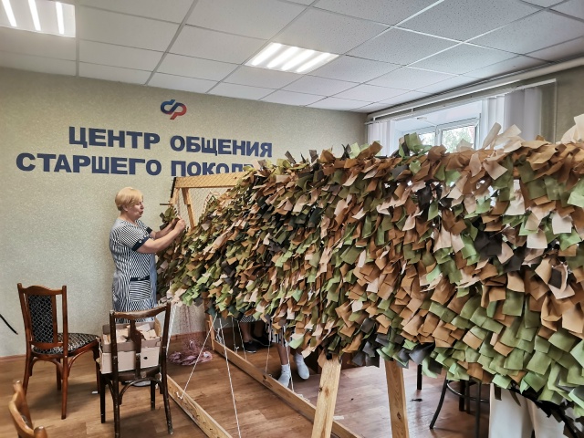 Активисты ветеранского движения во главу угла ставят помощь нашим воинам, участникам специальной военной операции. С начала нынешнего года волонтеры центра «Долголетие» сплели более 20 маскировочных сетей. Зимой изготавливали зимний вариант маскировки - плели белую сеть. Изготовили длинную 10-метровую сеть. Приступили к плетению 25-метровой, которая требуется для навеса над большим оборудованием. Со словами молитвы, как оберег, отправляют они свои изделия нашим ребятам.