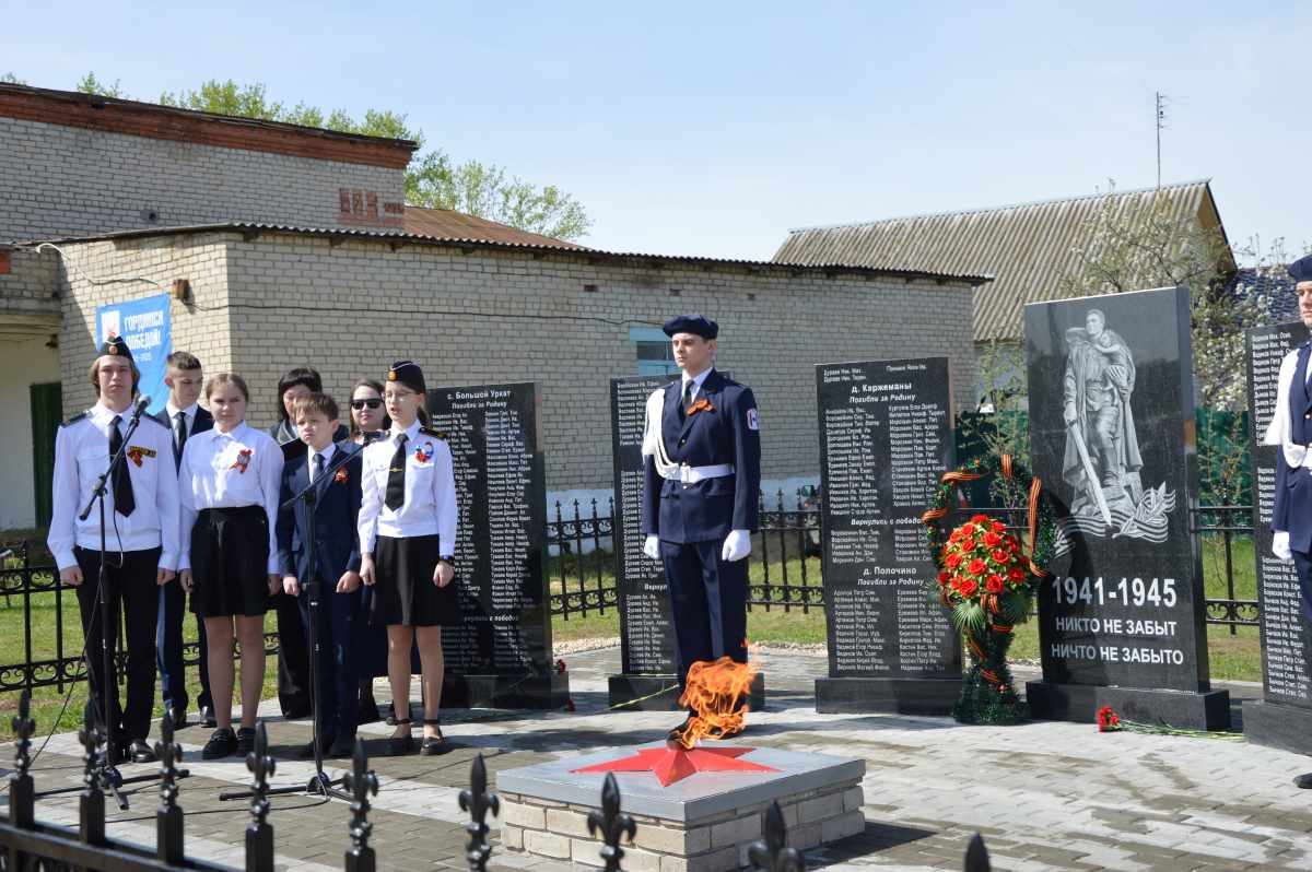 Как отметила заместитель Главы Ельниковского района - начальник управления по работе с территорией Ельниковского сельского поселения Т.И.Ванюшкина, некоторые имена не были запечатлены на старом мемориале, они установлены в ходе поисковой работы. Души ушедших участников войны, похороненные вдали от родной земли и на сельском кладбище, в этот день - 1 мая были со всеми нами, кто принимал участие в торжестве по случаю открытия памятника. И мы горды этой незримой связью, исходящей от них, к сердцам потомков – наших детей, онинесли вахту памяти, читали стихи, были участниками митинга, который вели вместе с работниками культуры нашего района. В почетном карауле были кадеты и юнармейцы, выстроившиеся по обеим сторонам дорожки, ведущей к памятнику. Поклониться героям Великой Отечественной войны, уроженцам уркатской земли к новому мемориалу прибыли официальные лица среди которых заместитель руководителя Администрации Главы Республики Мордовия и Правительства РМ Д.М.Борисов, Глава Ельниковского муниципального района Бекешев Ю.А., председатель Совета депутатов Ельниковского района Шашанова Т.А., председатель районной общественной организации ветеранов войны, труда, Вооруженных сил и правоохранительных органов В.В.Кидяева, было много почетных гостей, ветеранов, земляков. Атмосфера добра, единства и необычайной гордости витала в воздухе Урката. И вот он, торжественный момент открытия памятника! Следуя традиции, красную атласную ленту при открытии нового сооружения было предложено перерезать заместителю руководителя Администрации Главы РМ и Правительства РМ Д.М.Борисову, Главе Ельниковского района Ю.А.Бекешеву, Председателю районного Совета ветеранов В.В.Кидяевой и председателю районного Совета депутатов Т. А. Шашановой. Состоялось торжественное возложение цветов к подножию мемориала. Ведущие объявили Минуту молчания: «Мы склоняем головы перед памятью тех, кто свято и до конца выполнил свой долг, перед ветеранами войны». Почти напротив мемориала через дорогу еще одно святое для уркатцев место – храм в честь Покрова Пресвятой Богородицы, настоятелем которого является протоиерей Василий Старкин. Молитвенное служение, освящение святой водой придало еще больше духовности мероприятию, ибо мы верим в торжество вечной жизни над смертью. Отец Василий сказал, что у многих защитников Отечества, чьи имена высечены на этих скрижалях, был короткий земной путь, но они выполнили до конца свой священный долг и шагнули в вечность. Наш долг – хранить память о святом воинстве, спасшем Россию, не давшем попрать нашу святую веру. В своей речи, обращенной к Уркатцам, Дмитрий Михайлович Борисов выразил слова благодарности жителям за это событие – открытие нового мемориала. Оно стало возможным благодаря горячему желанию селян сохранить святую память о героях, кровью защитивших нашу свободу. Это стало возможным и благодаря государственной программе «Комплексное развитие сельских территорий», в которую включилось Ельниковское сельское поселение, благодаря инициативе сельской администрации и лично Т.И.Ванюшкиной. Человек неравнодушный, душой болеющий за вверенную ей территорию, она умеет работать с людьми, находя у них поддержку и понимание. Вот и этот символ благодарности нашим предкам возник при ее горячем участии. Дмитрий Михайлович выр