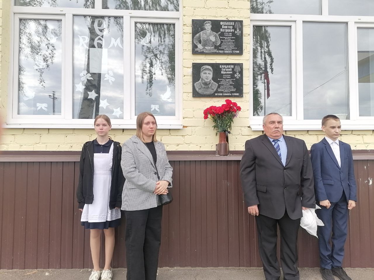 Это вторая мемориальная доска в честь выпускников Стародевиченской средней школы, ставших настоящими героями. Первая посвящена Фомкину Виктору Петровичу. Отдать дань герою СВО, в очередной раз поклониться матери Татьяне Ивановне и вдове Анастасии Юрьевне собралась вся школа, прибыл первый заместитель Главы района А.В.Малоземов, глава Стародевиченского сельского поселения Н.Т.Букатов, жители села. Щемящими сердце были выступления детей. Они заверили, что своим мужеством и отвагой Евгений Кардаков навек обрел бессмертие в сердцах его земляков, в сердцах потомков. Он с нами, он здесь и будет с нами всегда. Директор школы С.П.Бертякова сказала, что как бы не менялась жизнь, мы будем помнить о его подвиге. На эти мемориальные доски будут равняться поколения. Погибшие защитники Отечества, чьи жизни были так коротки, обрели нашу вечную память. Она выразила благодарность всем, кто пришел почтить память героя, поблагодарила главу сельского поселения Н.Т.Букатова за то, что приложил усилия для открытия памятного мемориала, ведь это, действительно, нужно не мертвым, это нужно всем нам, особенно подрастающему поколению. Молодежь воспитывается на примерах защитников Отечества, до конца исполнивших свой воинский долг. И эти светлые лица с памятных досок – вечное напоминание о доблести и чести. Они любили своих близких, может быть так, как никто не мог любить. Но когда Родине грозила опасность, встали на защиту ее рубежей. Низкий поклон матери, воспитавшей такого сына, низкий поклон супруге погибшего выразил первый заместитель Главы района А.В.Малоземов: «Уважаемые родные, дорогие земляки, Евгений Юрьевич погиб, защищая нашу мирную жизнь. Ваш сын, дорогая Татьяна Ивановна – настоящий защитник семьи, родной земли. Благодаря таким ребятам, как Евгений, Россия была и остается великой страной». О потерях всегда говорить тяжело и больно. Тем более, когда гибнут такие молодые. Евгений Кардаков родился 6 декабря 1990 года. 22 сентября 2022 года был мобилизован в ряды Вооруженных сил России. 3 июля 2024 года в ходе специальной военной операции, проявляя мужество и героизм, Евгений Юрьевич погиб на территории Херсонской области. Посмертно выпускник Стародевиченской средней школы награжден Орденом Мужества. Замирает мгновение, и даже ветер замер. Право открытия мемориальной доски было предоставлено вдове погибшего героя Анастасии Юрьевне и главе Стародевиченского сельского поселения Н.Т.Букатову. После завершения митинга дети возложили цветы к мемориалу.