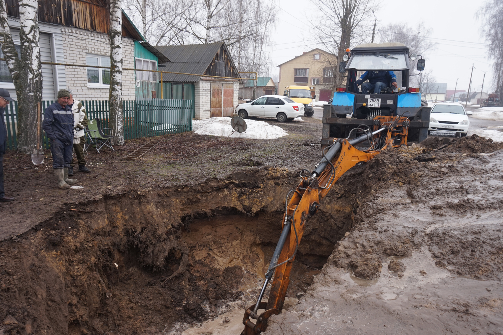 Второе апреля. Дождь. Улица Пушкина. Над огромным котлованом, со дна которого экскаватор методично выгребает мутную жижу, витает напряжение. Перед рабочими стоит непростая задача: отыскать источник утечки в старой водопроводной трубе, чтобы восстановить водоснабжение для жителей Темникова. По причине порыва часть города уже третий день живет без воды. Третий день - третий котлован, и еще ничего не понятно.