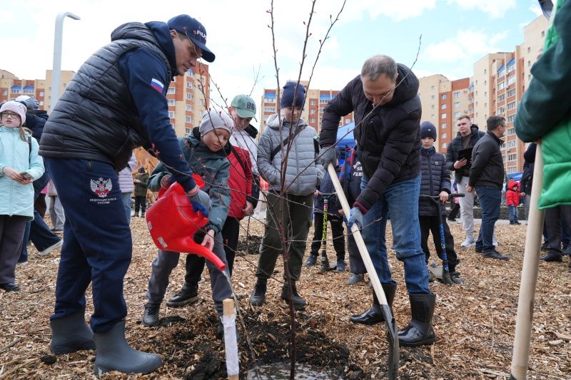 Вместе с руководителем республики субботник в Саранске поддержал заместитель министра строительства и жилищно-коммунального хозяйства РФ Алексей Ересько, находящийся в регионе с рабочей поездкой. Вместе с ребятами из экологической организации «Зеленый мир» и юными жителями микрорайона они высадили деревья, сделав площадку не только современной и интересной, но и зеленой.