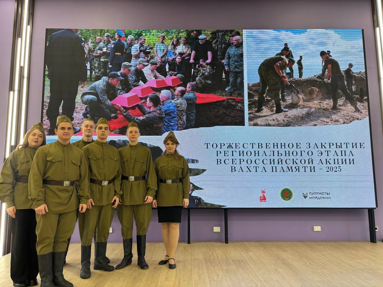 Бойцы отряда «Торбеево – Поиск» имени Константина Сергеевича Королева, студенты ТКММП им. Ю.В. Тутукова приняли участие в торжественной церемонии закрытия регионального этапа всероссийской акции «Вахта памяти – 2025», которая состоялась на площадке республиканского гражданско – патриотического Центра молодежи города Саранск.