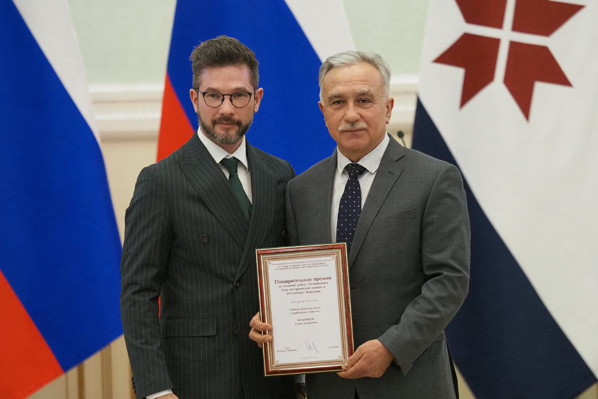 В честь профессионального праздника состоялось вручение государственных наград, а также награждение победителей и призеров журналистских конкурсов Главы Республики Мордовия. Творческий коллектив АНО «Редакция газеты «Торбеевские новости» был отмечен денежной премией за цикл публикаций, посвященных году исторической памяти в Республике Мордовия. Награду редактору газеты «ТН» Семену Кильгишову вручил руководитель Администрации Главы Республики Мордовия и Правительства Республики Мордовия Булат Хайрутдинов (на снимке).