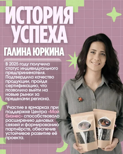 «Когда понимаешь, как выстроить процесс и куда двигаться дальше, бизнес начинает расти. Поддержка дала не только инструменты, но и уверенность в следующем шаге», — отмечает Галина Юркина.